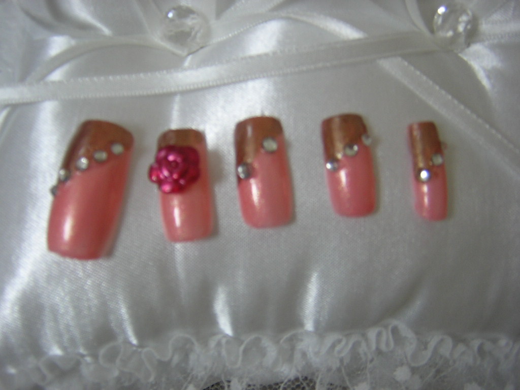 秋色ネイルです。100円均一でチップを購入して自作しました。 ポイントにしているバラのお花も100均の商品です。 ピンクと茶色を組み合わせて、秋っぽい感じにしてみました。 今度は紫なども入れてみたいです。