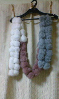 秋のファッション☆ 楽天で買いました 3つ色違いで買ってつなげました うささんのファでやわらかく色も淡くてとってもかわいいです
