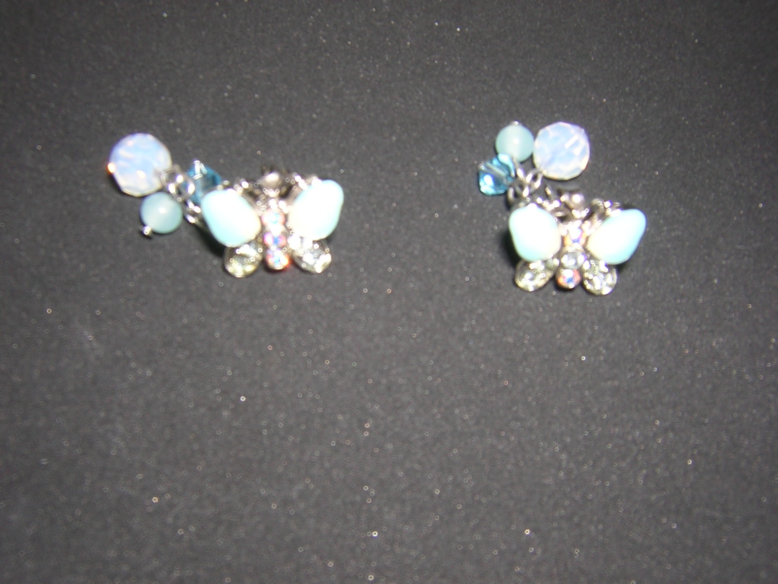 トルコ石のようなブルーのピアスです。 蝶モチーフが春らしくて、春先にたびたび使用しています。 一昨年くらいに購入しました。ビーズの細工なども細かくて、ANNASUIのアクセサリーは華奢でかわいいものが多いと思います。