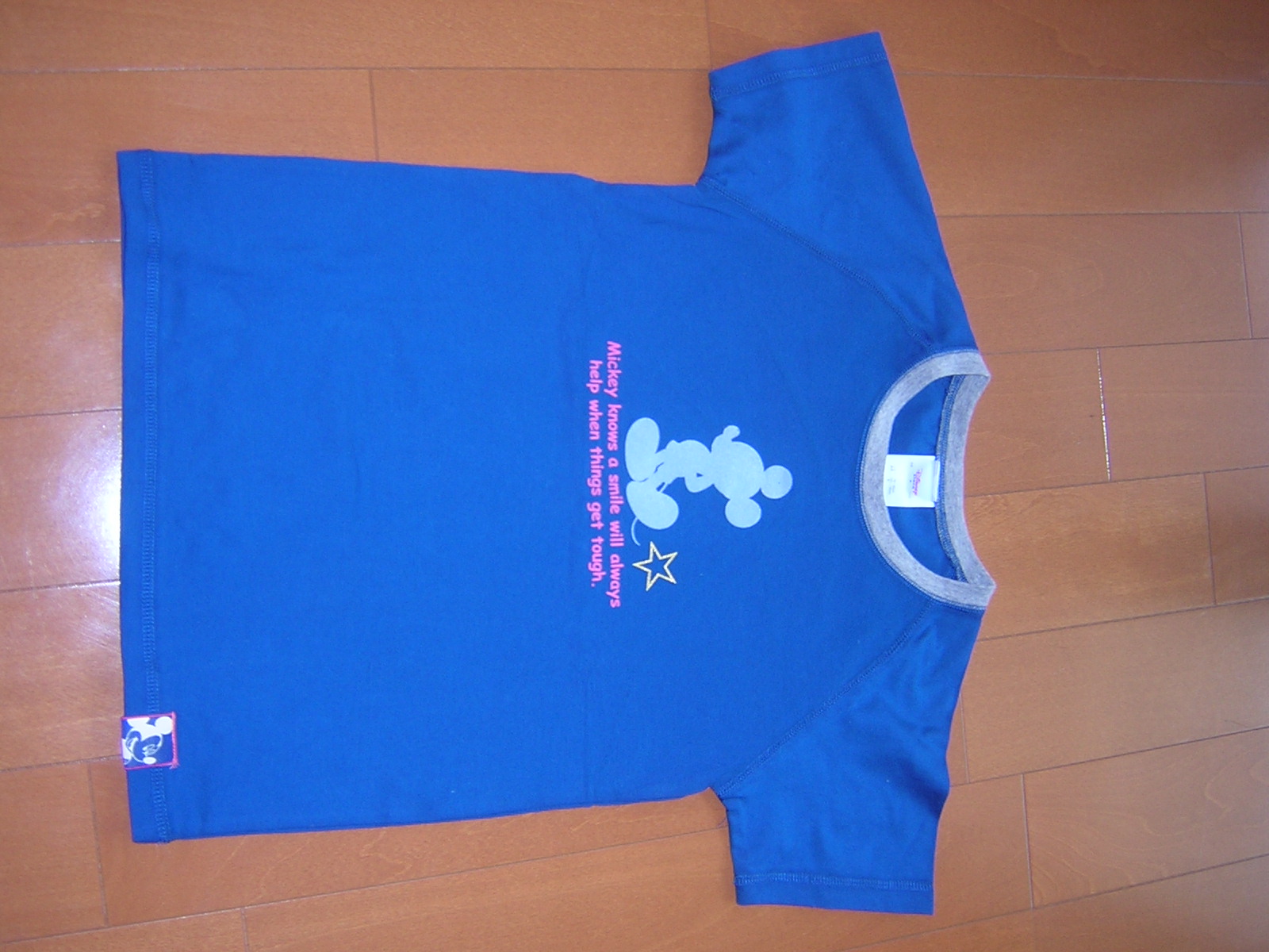 先日、DisneyStoreにて購入しました。セール品です。 この春も引き続き、レイヤードが流行るようなので、ハッキリした色のTシャツを探していました。DisneyStoreのTシャツはデザインもかわいいものが多いのですが、素材がしっかりしていてお気に入りです。洗濯機でガンガン洗っても伸び縮みしにくく、優秀だと思います。鮮やかな青色なので、薄めの色の長Tなどと重ねて着たいです。
