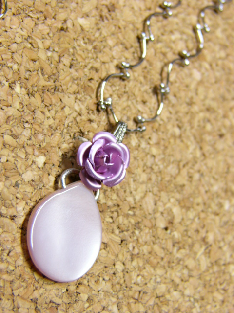 バラモチーフと貝のネックレス。今年の春大流行の小花柄のプリントの服にも合いそうなラブリーなネックレス