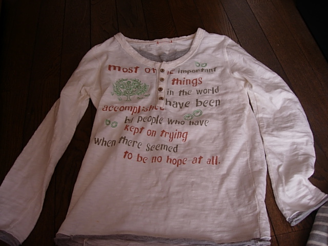私の春ファッションアイテムは、 この重ね着風の服です。実際は重ね着ではありません。 重ね着のようになっているので、これ単体でもいけるし 写真じゃ解りにくいのですが、花の柄もついているので 女の子らしいです。お気に入りです。