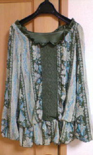 これはカーキですが黒も買いました 異素材ミックスでとてもかわいいです 春はこうゆう小花柄とかが多くでるのでついつい買ってしまいます^^;これも2000円しない位でした 結婚してからプチプラなお洋服を見つけるのが上手になったと思います(笑)でもどう見ても安物みしか見えないものが何万円もしたりって事もよくありますよね だから うまく着こなせてれば問題ないんです^^