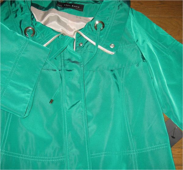 今回、初めてZARAというブランドの物を購入しました。 大胆なグリーンのジャケット♪ もともと1万円の物がバーゲンで3990円でした。 今日の私の戦利品で〜す
