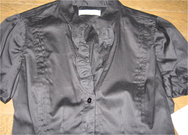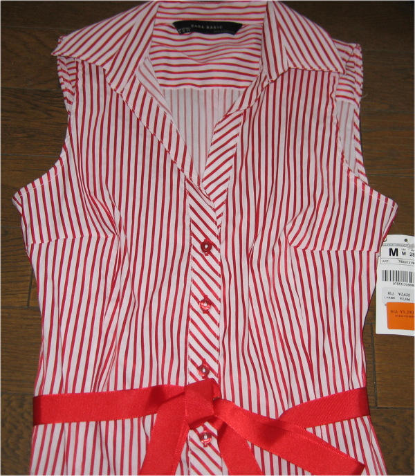 こちらは3990円でした。 バーゲン率でいうとそこまで安くはないのですが ラスト1点でしたので人気のデザインかと思います。 写真ではイマイチ解りにくいと思いますが 半そでの部分がパブスリープになっていてとってもキュートなのに 胸のラインはVに深くあいていて胸元がセクシーなんです。 これで、ダイヤのネックレスなどを忍ばせればキラキラとキレイかな〜なんて思い購入しました。 今回、GETした戦利品の中ではお気に入りの一品です。