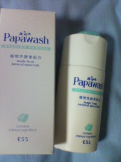 パウダー洗顔のパパウォッシュです!!! 使ったあとはさっぱり、つるつる!! 使い続けると、 肌のトラブルがなくなった気がします。 泡立たないのが パパウォッシュの難点ですが・・ww