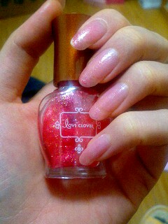 赤でキラキラのペディキュアにしたい!と思ってソニプラで買ったこのネイルカラー。使用してみると意外と薄づきでラメも上品だったので手に使うことにしました。写真は2度塗りです。テクスチャーもゆるくて扱いやすい。お値段700円。おすすめです。