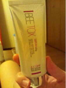 ジェル状のさらっとしたクリームが、顔全体にすっとなじんで使い心地がとてもいいです。 蜂の毒なのかな?って香りがします(*^^)v 肌再生ができる化粧品ということなので、疲れきった私の肌を再生していまーす(*^^)v