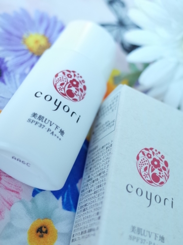 coyori美肌UV下地を使ってみました* 上からパウダーをのせるととってもキレイにみせてくれます。 肌へも優しい処方で、クレンジング不要。 これを使うと、オイリー肌の私も 油浮きがあまり気になりません。 使用前には、かならずよく振って使用するタイプ。 薄い肌色の、さらっとしたテクスチャ。 すごくなめらかなクリームで、 とても伸びがいいです。 塗ると、しっとりしています。 白浮きもしないし、とても肌なじみの良い色味です。 塗ったところが、ほとんどわからないくらいになじんでいますが、 ほどよい薄化粧...