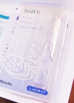 わたしの真夏のレスキューアイテムを紹介します! サンプルでいただいたカネボウ フリープラスのモイストリペアエマルジョン2、しっとりタイプの乳液です。 日焼けで敏感になっている肌に保湿は必須なので、できるだけ 優しいスキンケアアイテムで保湿をしたいので、この乳液がおすす めです! 夏の毛穴に詰まってニキビができてしまうこともなく、 じっくり肌に浸透して、水分を保持してくれます。 保湿と一緒にエイジングケアができます^^