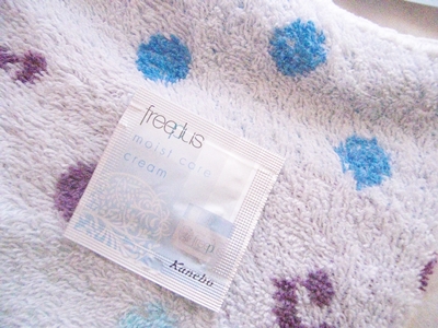 わたしの真夏のレスキューアイテムを紹介します! サンプルでいただいたカネボウ フリープラスのモイストケア クリームです。 夏場の不安定な肌に普通のクリームをつけちゃうと毛穴が ふさがってニキビ出現!という事態に陥りかねませんが このモイストケアクリームは私が大好きなジェル状のクリームで すっとなじんで、暑い夏にも使える便利な保湿クリームです。 ぷるぷるしていて、塗ったあともベタベタしないので 汗をかいてしまうこの時期におすすめです。