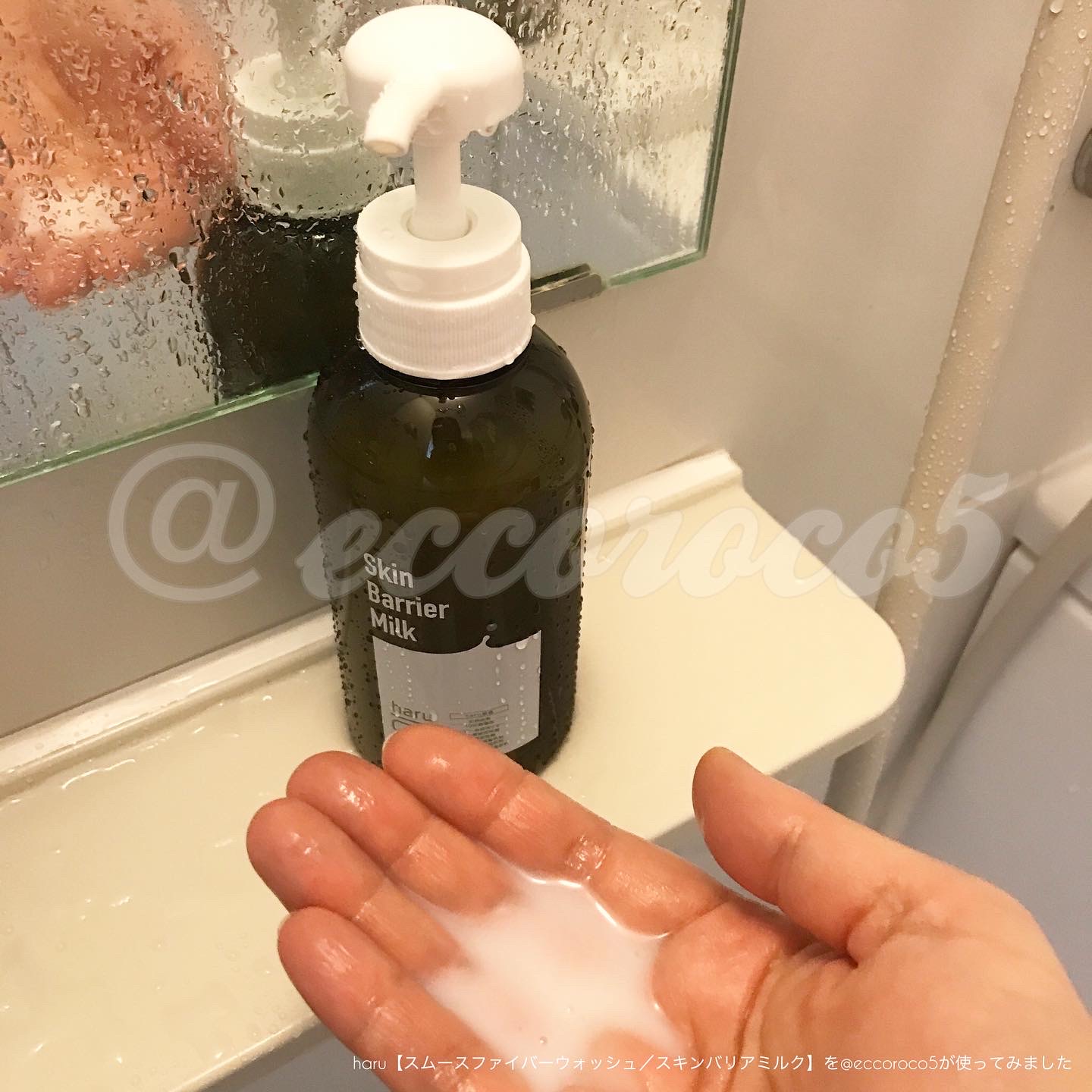 ールインワンシャンプーを使ったことのあるharu。 新しく、ボディウォッシュと、ボディミルクが誕生! シンプル・かんたんに。でもちゃんとおふろ時間を豊かにする2商品。 シャンプーと同じく、四角いボトルがスムースファイバーウォッシュ。 手で軽くなでて洗うことを推奨されているボディウォッシュ。 泡で出てくるタイプじゃない普通のポンプで、手洗い推奨って使ったことないかも。 プッシュすると、いつも使っているボディソープよりも、しっかりめのテクスチャ。 だから手の平でしっかりキャッチ可能! 力を入れず...