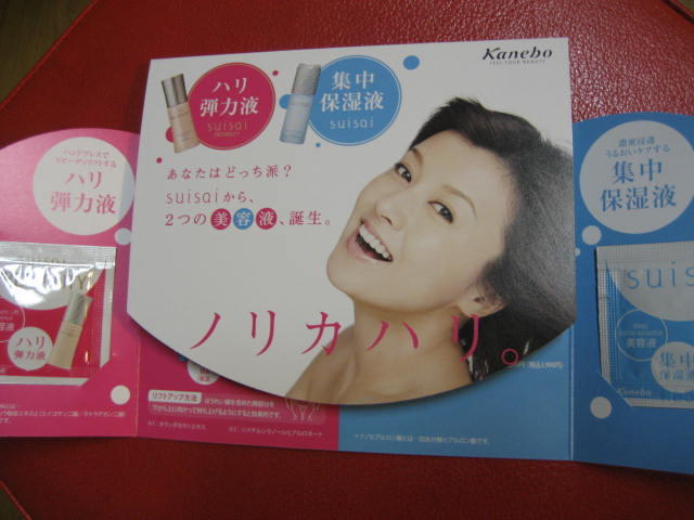 ノリカハリ! CMでみて気になっていました。しっとりもちもちとすべすべなめらかと、2種類のサンプルです。 両方使った感じは、しっとりもちもちのほうがよかったです。 リフトアップしながらほうれい線を持ち上げるといいそう。 気になる部分ですからね。