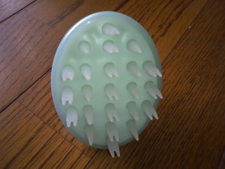 ヘアケアの基本は、 地肌ケアだとも言われてます。 シャンプーする際に、 これを使って、 地肌をマッサージして、 地肌のコリをほぐして、 いいヘアになるのを目指してます。