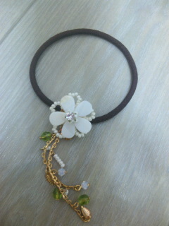 サイドポニーをするときやハーフアップ、ポニーテール何でも使えちゃいます。 白いお花で清楚な雰囲気に。 でもビーズがついてて可愛くもあります。 髪がなびいた時、ビーズが揺れてキラキラ光るのが綺麗です。