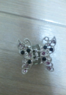 蝶々型のヘアクリップ。 両サイドの髪を少しとり、後ろに持っていき、少しねじってこのクリップでとめます。 簡単にハーフアップの出来上がり! 髪をねじる事で、トップにボリュームが少し出ます。 上品なまとめ髪が出来ます。
