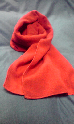 手触りふわふわのフリースマフラー。 肌が弱いので首元はファーやカシミヤ・フリースなどのチクチクしない素材のマフラーをしています。 (フェイクファーや毛糸のマフラーだと直ぐに痒くなってきてしまうのでNG) 冬は黒っぽい洋服を選んでしまいがちなので、さし色に、と思い切って赤を選択!! 赤は滅多に使わない色なのでかなり新鮮! ポイントになって可愛いですね〜。