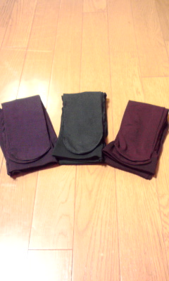 冬のファッションアイテムといったらカラータイツでしょう♪ こちらは全てチュチュアンナのもの。 左からダークパープル・チャコール・赤茶色です。 今年はこの三色の出番が多いですね。 チェックやアーガイルといった柄物にも挑戦してみましたが、足はやはり無地が落ち着きます・・。 70〜80デニールの厚さが好みです♪