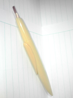 ベストコスメ アユーラのスライド式リップブラシです。 キャップがなく、サイドの出っ張った部分をスライドさせるとブラシが出てきます。 確か数年前のクリスマスキット?か何かに入っていたものです。 急いでメイク直しをしなければならない時に非常〜に便利なんです! 片手でちゃちゃっとブラシを出せて直ぐにしまえる♪ 適度な太さが握りやすいし、いいですね〜コレ♪ 毛量は少なめですが、口角がきちんと描けるので使いやすいです。 私のベスト オブ リップブラシ!です。