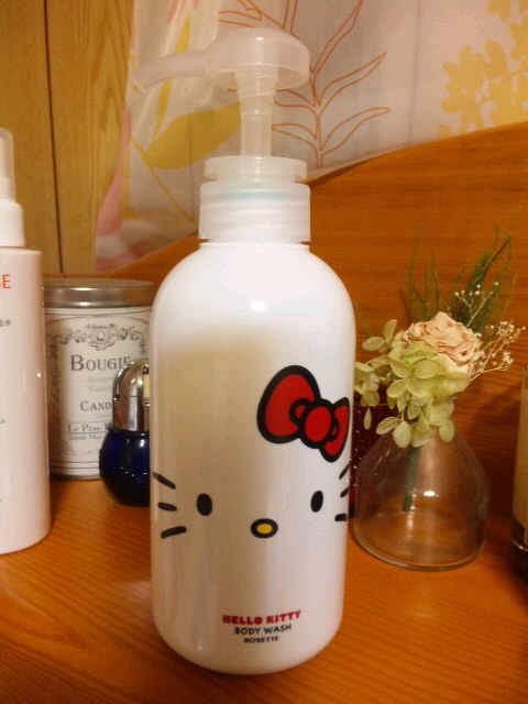 お気に入りボディケアアイテム ボトルがキティちゃんの顔になってて、 かなり可愛いです! 裏に書いてある使用方法も、 キティちゃんがモデルで書かれてるんです。 100%植物生まれの洗浄成分。 フワフワの泡で洗いあがりしっとり。 りんごの香りで癒されます♪