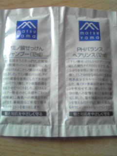 松山油脂 アミノ酸せっけんシャンプー・PHバランスヘアリンスのサンプルです。 アミノ酸せっけんシャンプーはクリーミーな泡で洗いやすかったです。 せっけんシャンプーなので、泡切れは抜群です。 ただ、せっけんシャンプー特有のきしみはあります。 シャンプー後に、PHバランスヘアリンスを使うと しっとりして、きしみもなくなります。 刺激も少ないので安心して使えます。