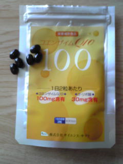 サイエンス・サプリのコエンザイムQ10・100です。 60粒入りで約1か月分の容量です。 黒いソフトカプセルです。 1日の目安が2粒で コエンザイムQ10が100mg含有 α−リポ酸が30mg含有 これを飲み始めて2週間くらいになりますが 肌の調子がよくなった感じがします。