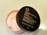 body shopのビタミンEモイスチャークリームです。 もう何度もリピして使っている保湿クリームです。 やさしいピンク色で、ほんわかとしたベビークリームのような良い匂いも好きで愛用しています。 肌にすうぅっとついてべたつかず、伸びがいいのと目元などがふっくらとなじむ感じがして、夜のケアにかかせません。 化粧下地にも使えるので、乾燥のひどい部分に重ねてつけても化粧くずれせず使えます。