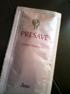 Jinoのアミノシャンプーです。 アミノ酸「味の素」の化粧品会社から出ているシャンプー。 お肌にもいい成分なのでもちろん頭皮にも良いというわけ…で手触りや泡立ちの感触も○です。乾いた後のかゆみも感じませんでした。洗い上がりの髪の毛が、するっとした感じで手触りが良くなりました。