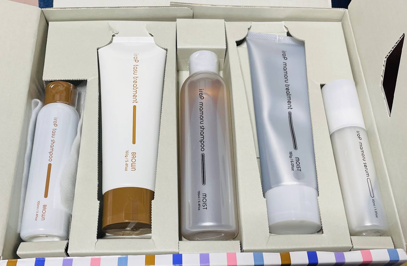 髪色ケア診断により、一人ひとりの髪色に合わせて使用スケジュールを パーソナライズ提案してくれる素敵なサービスです。 質問に答えていくと 私の髪にあったデイリー用シャンプー&トリートメント、 アウトバスセラムの5品のセットが決まります。 私は、 ブラウン週3モイストタイプでした✨ イロップ カラーケアセット [BROWN/MOIST] イロップタスシャンプー/トリートメント〔BROWN〕 ヘアカラー後、 日を追うごとに抜けてしまう色をチャージするシャンプー&トリートメント。 シャンプーとトリートメント...