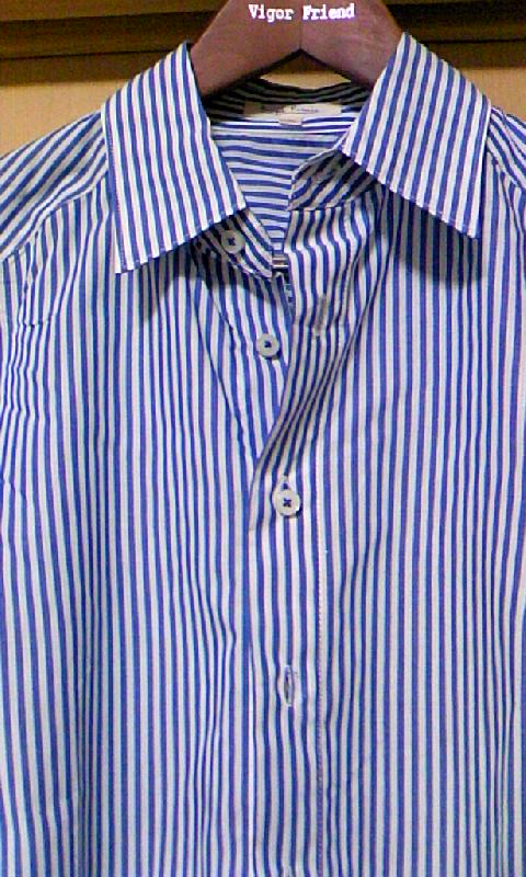 秋に大活躍のストライプのシャツです。 夏のバーゲンで売ってました。笑) ストライプがはっきりしてるので、 すごくカッコよく着こなせます。