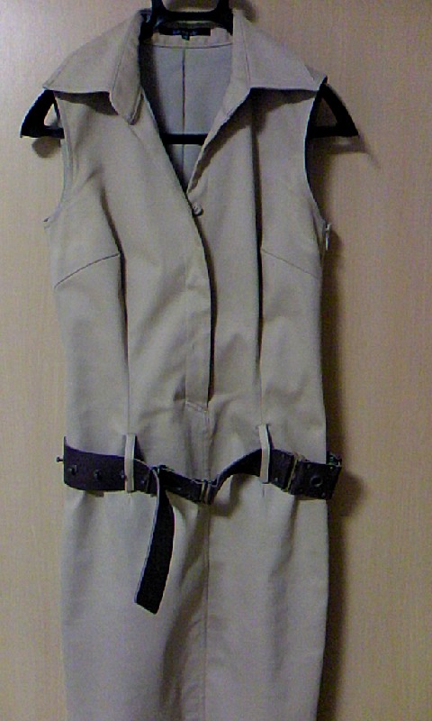 シンプルな形のワンピースですが、 腰のところに、ベルトがついていて、 それがアクセントになります。 カーディガンを何色を着るかで印象も変わるし、 秋に大活躍するワンピースです。