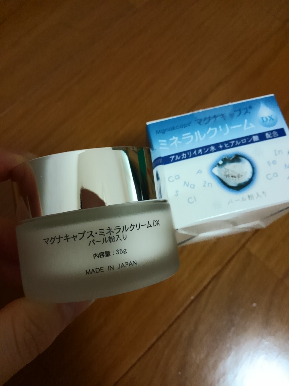 天然のミネラル成分、 マグナキャプス を配合したクリーム。 マグナキャプス というのは初めて聞きました。 調べてみると、 Mgnakcaps(マグナキャプス)は、ホタテやカキなどの貝殻から作られる粉末のカルシウムで、健康を維持するため不可欠なミネラルなんだそう。 この質の良いマグナキャプスが、このクリームのカナメとなり、高い保湿効果が得られるようです。 他にも、真珠由來のアルカリイオンで肌のハリアップ効果が期待できたりと、 アンチエイジングに良さそうなクリームです。 しかも、純国産オーガニ...