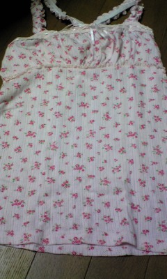 春らしいピンクが可愛いキャミソールです。 小さい赤いお花が、さらに可愛さUP★ SALEの時に購入したリズの服を着る時に、 少し寒いかな?と思い、この春購入しました★ 生地が厚めなので、薄手の服を着る時には最適です。 背中はヒモが×かたちになっているので、 ワンピースなどを着る時に、中に着ておくと、 背中が可愛い感じになりますよ♪ キャシャな感じに見えるところがいいですよね★ お値段も2900円位と、リズにしてはお手頃でした!