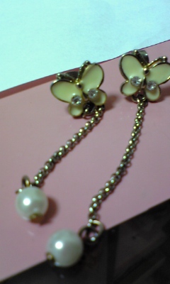春といえば!!! 花!!それに蝶!!!ですよね♪ これは、フラッと寄ったショップで発見しました。 白で、可愛い形をしているところが気に入っています。 パールがとストーンがついているところがポイントです。 花柄の服を着るなら、 やっぱりどこかに、蝶を飛ばしてあげたいですよね♪ 春らしさをプラスしてくれる、大活躍間違いなしのピアスです。 お値段も可愛く315円でした★