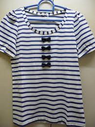 バーゲンの戦利品は、 リボンが付いたボーダーのカットソーです。 可愛いので、ヘビロテで着てます。 ジーンズでも、スカートでも合うので、重宝してます。