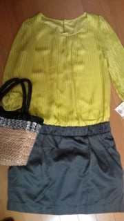 バーゲンの戦利品は、このワンピースです。 切り替えで、ツーピースに見えますが、 ワンピースなので、朝、何着ようか迷った時に 重宝すると思って買いましたぁ〜