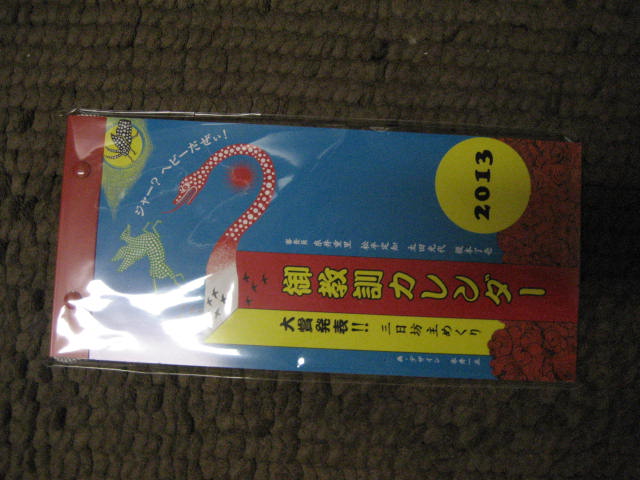 初売りの戦利品です。 日めくりのカレンダーが欲しいと思っていたのですが、面白そうなものを見つけ買ってみました。 3日に一度めくるのですが、面白い一句が書いてあります。 大人向けのようですが、難しく意味が分からないものが多くあります。