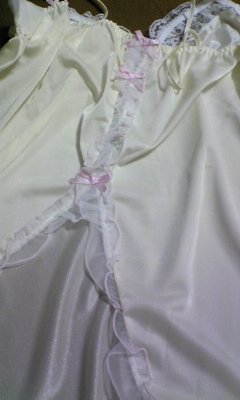 恥ずかしながらの戦利品(笑) 一目ぼれしてしまい、購入しました。 後ろにピンクのリボンが付いています。 冬には使えませんが、春に使う予定です♪ ピンクと黄色に白!!! 春色なので、ワクワクしてきますよね♪ レースまで付いていて可愛すぎです!!! 無理だと思いますが・・・・ これで彼を悩殺っ★ なんてね♪♪