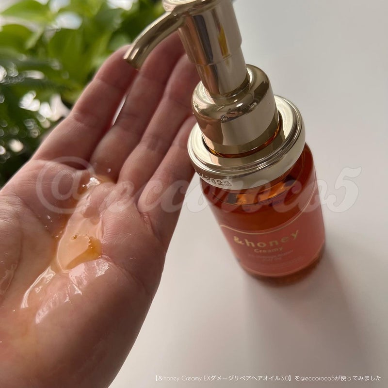 \甘いお菓子のような香り広がる、しっとり濃厚洗い流さないトリートメント/ &honeyのトリートメトは4種類あり、そのうちCreamyはダメージケアに特化したオイル。 【使い心地は…】 ≪テクスチャー&香り≫ とろっと濃厚で、ワンプッシュでたっぷり出てくるオイル。 ワンプッシュ押しきると、肩につくくらいのボブヘア多毛の私でも多く感じるくらい。 ロングの人はがっつり押しきって、ちまちま出さずに使えて便利そう。 ショートさんは少しずつ使うのが吉。 先日使った同ブランドのヘアパック同様、商品名からイメージ...