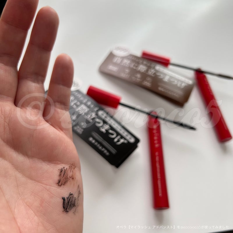 \税込999円とは思えぬ感動仕上がり!/ ジップ袋に入って、開けやすく、ごみの分別がしやすいマスカラ! このパッケージにすることで、プラ8割減なんだって💨 もはや全部これでいい…! 小回りの効く、スリムブラシはすごく使いやすくて、上睫毛を塗ったときに上瞼についたりすることがなくなった! (大きなブラシだとたまに着いちゃうのよね…) 下まつ毛にも立て塗りやすい! 繊維が入ってないのに、ぱちっと目になれちゃうフィルムマスカラ。 まったくダマにならず、きれいに伸びる。 01漆黒、03モカブラ...