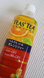 伊藤園のTEA'S TEA ベルガモット&オレンジティーです。 夏バテ、水分補給にこれをよく選んでます 美味しいし香りが良いのでリラックスも出来ちゃいます! ! 果汁1%なのに‥ 飲んだ後あまり渋い‥というか苦味もないです。 ◇カフェイン90%オフ ◇カロリーオフ