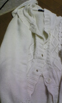 初売り戦利品★ 約半額でした♪15000円が7000円位。 アンゴラも使用しているので、 薄くても暖かいんです★ 薄着している時に、これ1枚を羽織ると、 暖かさが全然違います!! 冬・秋や、春先にも使用できるのでオススメです♪ フードもついているので、 コートを着る前の時期に使用できそうです。 黒やグレーのカーディガンは持っていますが、 白を持っていなかったのでちょうど良かったです^▽^v