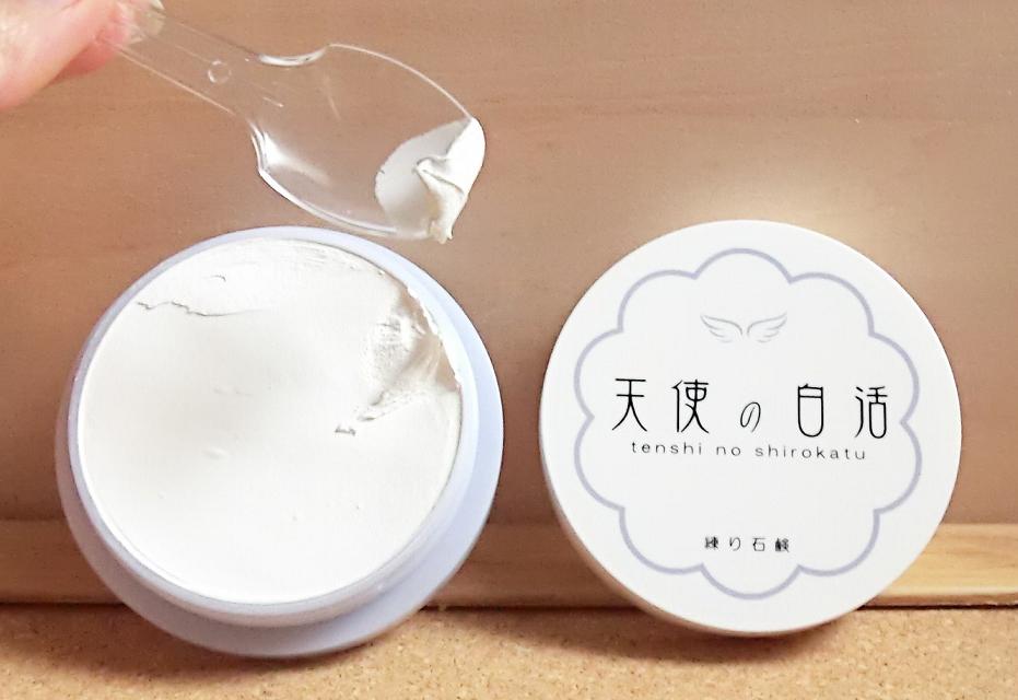 真っ白な練り石鹸で無香料 泡立てネットを使うと、弾力のある泡が簡単に作れます。 少量で、かなりのモコモコ泡ができるのもすごくいいかも・・・。 弾力のある泡で洗顔すると、すっきりと毛穴の汚れまで落としてくれます。 洗い上がりが、さっぱりして気持ちいいのが気に入っています。 肌のごわつきが取れ、毛穴の汚れも落ちて、洗顔後の化粧水の浸透力がいいです。 少しつっぱり感を感じるので早めに化粧水をつけるようにしています。 天使の白活は美白できるペースト状の練石鹸というので、私のくすんでいる肌が 少しでも明る...