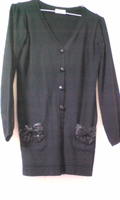 黒い長めのカーディガンです。 ウエスト部分用のリボンベルト付きでした。 (写真に写ってないのが残念!) ポケットのところがキラキラリボンで女の子らしいです★ 価額も手ごろで、少しゆったりめに着れるのに、 キレイなラインを出す事ができます。 この冬は、柄物スカートを購入する予定なので、 大活躍しそうです。 グレーのカーディガンと悩みましたが、 しっくりくる黒に決定★ ピンクの花柄スカートとか購入して、 コーディネートしてみようと思います★ お気に入りの服があると、コーデを考えるのが楽しくなり...