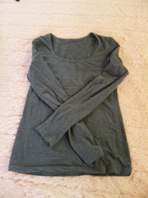 お気に入りファッションの、グレーロンT。 ノンブランドでシンプルだけど、形が気に行ってます。 首の部分のカットが広くてデコルテがきれいに見えます。
