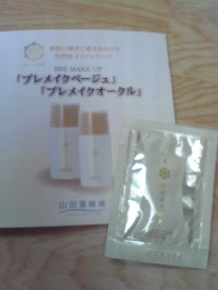 山田養蜂場のBEE MAKE UP プレメイクのサンプルです。 SPF30 PA+++なので日焼け止めにもつかえますが ベージュとオークルと2種類のカラーがあるので リキッドファンデとしてナチュラルメイクとしても 使えると思います。 化粧下地でもOK。 パウチされている量は1回分なのですが 中身が多めに入っているので調整して使うとよいです。 確かに1回で使うには多い量でした。