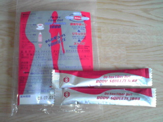 デ・トクス ファイバーダイエット ボディスクィーズ 1000 懸賞で当たったサンプル。 2.5g×7包入ってました。 成分は コーヒー末・・・1290mg 難消化性デキストリン・・・1000mg コーヒー豆抽出物・・・50mg アカメガシワ・・・50mg オリゴ糖・・・50mg GABA・・・20mg 羅漢果・・・10mg ギムネマ・・・10mg ガルシニア・・・10mg 乳酸カルシウム・・・10mg コーヒー感覚で飲みました。 一袋入れて、お湯を注いで低脂肪牛乳を入れて飲みました。 コーヒーとは味は違うけど(当り前か) 普通に飲めま...