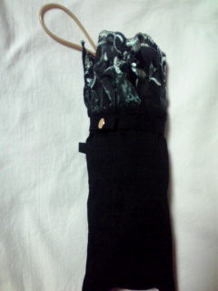 紫外線対策用の黒い日傘。 黒いので照り返しもきちんと防止できます。 縁取りがシルバーのお花の刺繍になっています。可愛くてお気に入り♪ 約22cmでバッグにすっぽりと収納できる折りたたみ式。 個人的には若干重く感じるので、壊れたらもう少し軽量なタイプに買い換えるつもりでいるのですがなかなか壊れず・・・もう5目になりますv