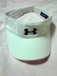 紫外線対策用の白いサンバイザー。 UNDER ARMOURのロゴが入っていて素敵です♪ 幅は後頭部のマジックテープで調節可能です。 普通のキャップだと髪型がつぶれてしまい脱いだときに気になるので、最近は専らサンバイザー愛用者です。 白なのでおでこのファンデーションが付着すると目立つので、次は色違いの黒を購入予定でいます♪