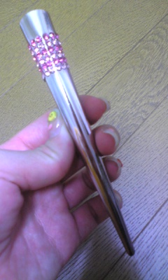 Pinkでキラキラしている少し大きめのヘアアクセです。 左右の横髪を纏める時に使います。 エレガントな服装の時や、特にワンピースの時に使用します。 仕事が忙しくてバタバタしている時に使うと、後ろ姿は綺麗でいられるかもしれません!